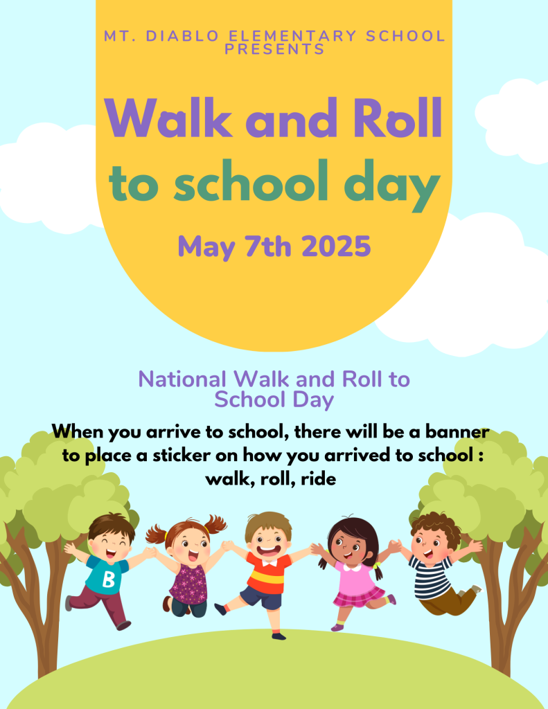We’re excited to announce that Mt. Diablo Elementary School will be celebrating National Walk, Bike, and Roll to School Day!
