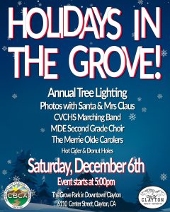 This Saturday (December 6), please join us for our annual “Holidays in the Gove!” event. We will have our annual tree lighting, photo’s with Santa and Mrs. Claus, and so much more! Event starts at 5:00 pm. We hope to see you there.
